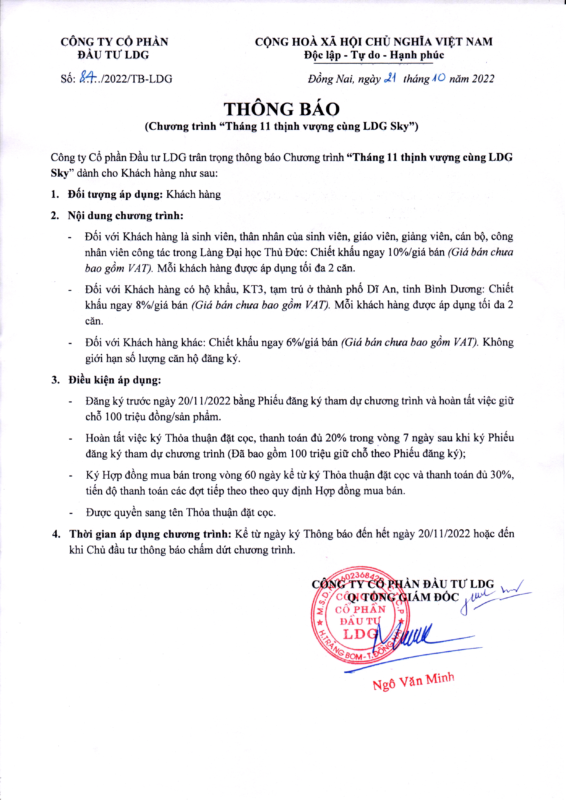 - Chiết khấu lên đến 7,5% cho khách hàng thanh toán sớm.